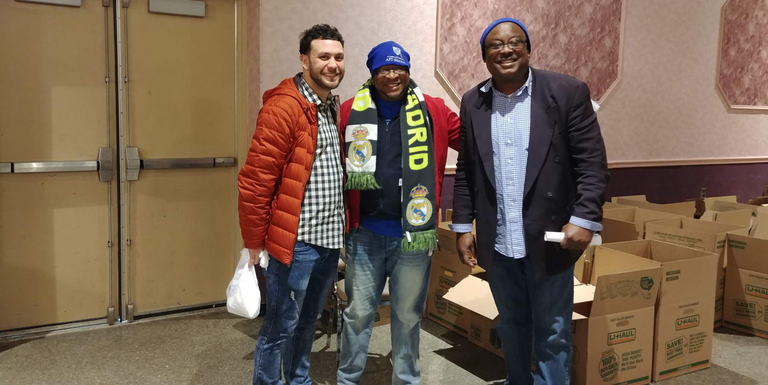 On Monday, December 17, 2018, staff and members of AFT-Maryland, BCFPE, City Union of Baltimore, and others joined with the Metropolitan Baltimore Council AFL-CIO in preparing holiday baskets to deliver to union families in need. AFL-CIO Community Services organized the effort, and members and staff volunteered their time to pack, sort, and deliver donations. Thank you to everyone who participated!