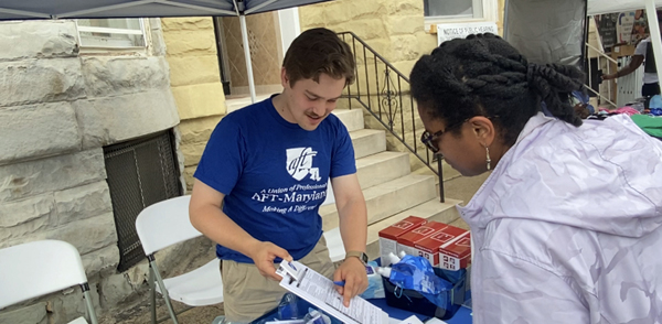 The event also provided an opportunity for our leadership and staff to introduce themselves to members of the community, as some who stopped by the table were unfamiliar with the organization. The high visibility and public engagement offered an opportunity for people in Baltimore to learn about the workers who provide them with public services. Members of our affiliated unions, including the City Union of Baltimore (Local 800), Maryland Professional Employees Council (Local 6197), and the Baltimore Teachers Union (Local 340), stopped by the AFT-Maryland table to meet the community, as well.