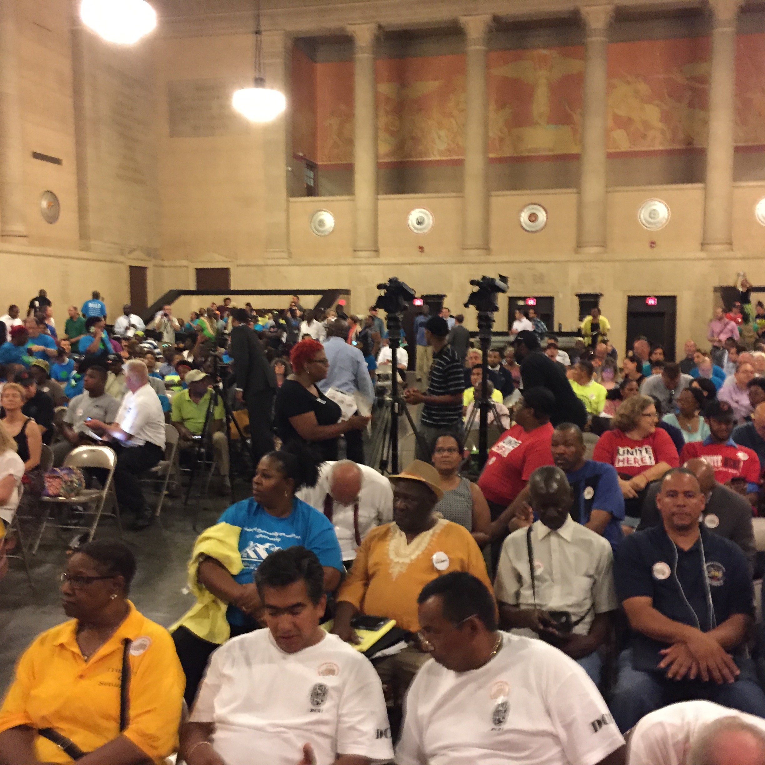 AFT-Maryland, in conjunction with partners from a large cross section of Baltimore (including labor, community activist and the religious community), told the Baltimore City Council it wouldn’t support the Sagamore development at Port Covington TIF unless some key demands were met. The City Council held a hearing on the Port Covington TIF on Wednesday, July 27, 2016 at the Baltimore War Memorial building.