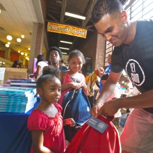 On Thursday, August 21, 2014, AFT-Maryland partnered with the Family League of Baltimore and the Y of Central Maryland to put 1,200 books in the hands of students at Moravia Park Elementary School, through AFT-Maryland's partnership with First Book.